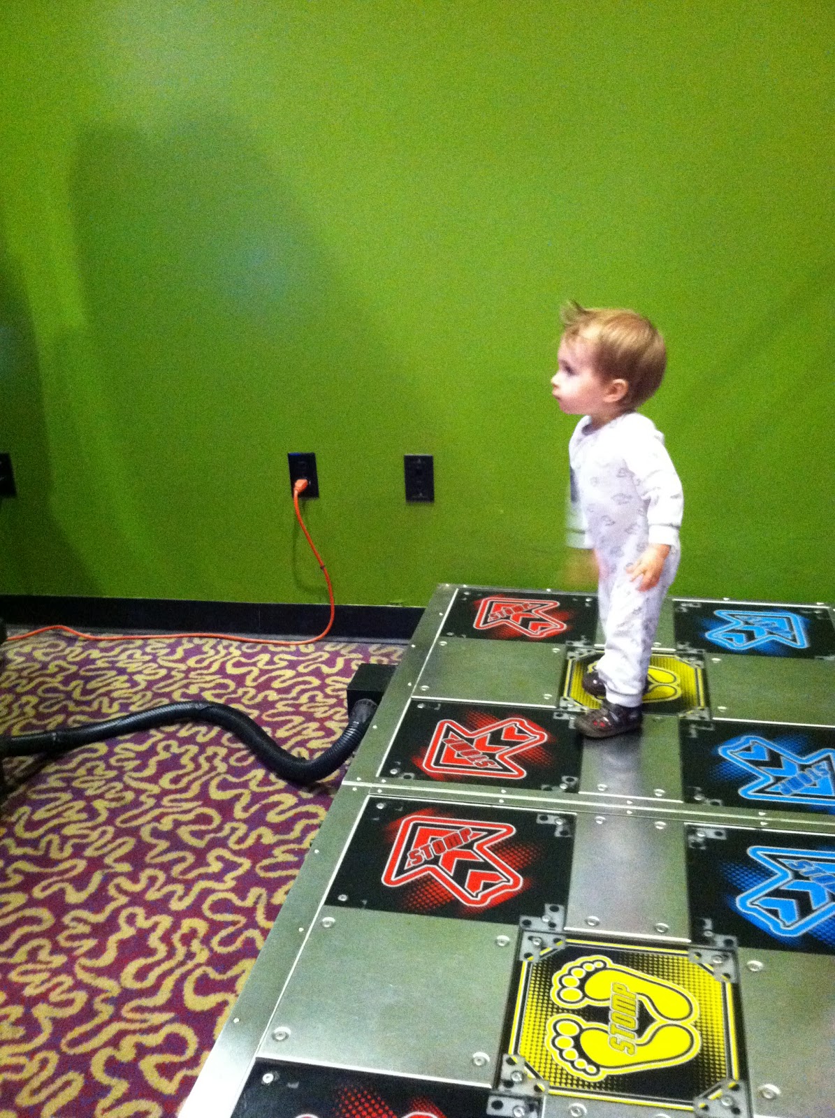 Aunt Jenna showed him how to throw a rock in the fountain and make a wish